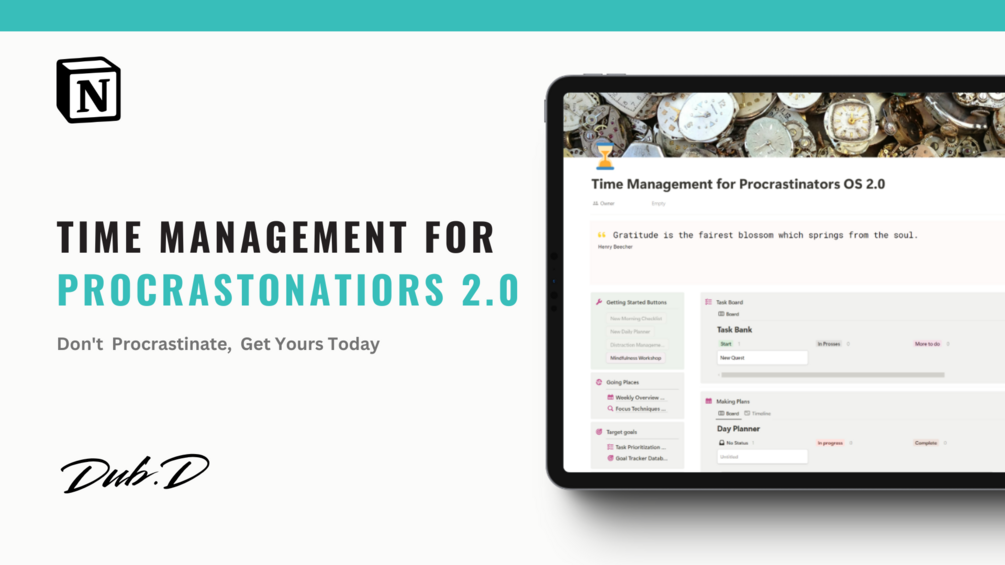 Created to make time management easier for those who struggle with procrastination, this versatile template is designed for use within Notion.