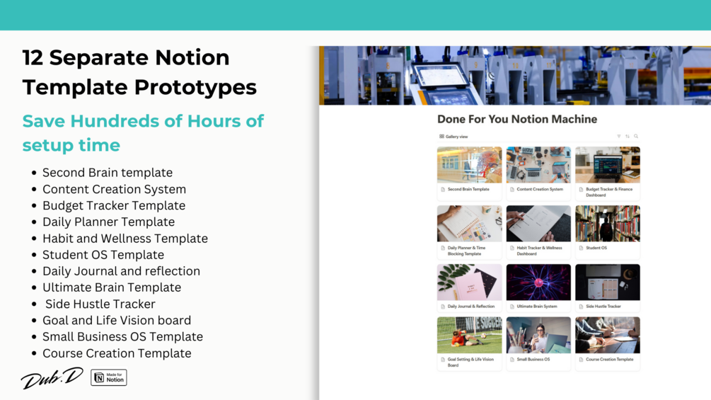 You’ll get 12 customizable Notion prototype templates, each with a step-by-step guide to help you build your own systems. These prototypes are designed to be flexible, so you can create workflows, dashboards, and templates that fit your exact needs.